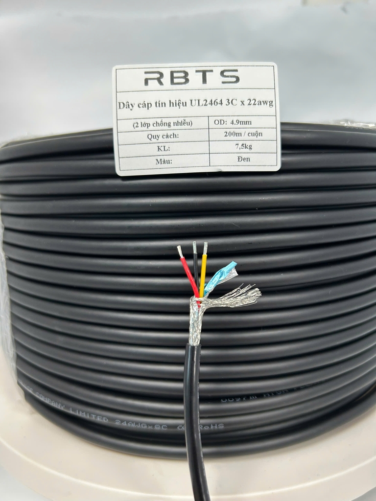 🆘 3.22 * Dây cáp tín hiệu UL2464 3Cx22awg, tiết diện lõi: 0.32mm2, OD:4.9mm - 2 lớp chống nhiễu
