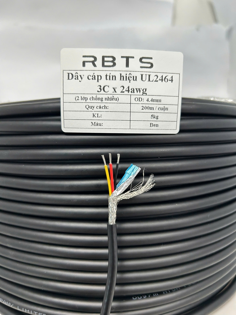 🆘 3.24 * Dây cáp tín hiệu UL2464 3Cx24awg, tiết diện lõi: 0.21mm2, OD:4.4mm - 2 lớp chống nhiễu