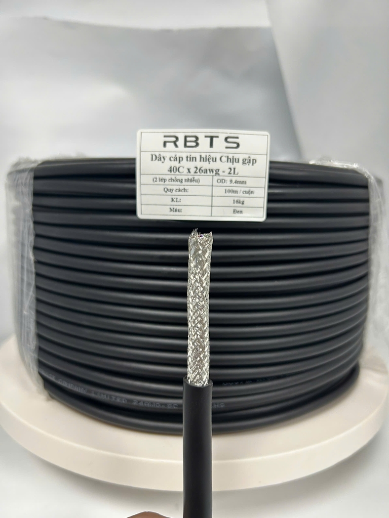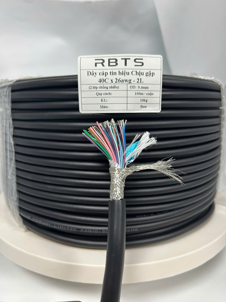 🆘 * Dây cáp tín hiệu Chịu gập 40Cx26awg, tiết diện lõi: 0.13mm2, OD:9.4mm - 2 lớp chống nhiễu