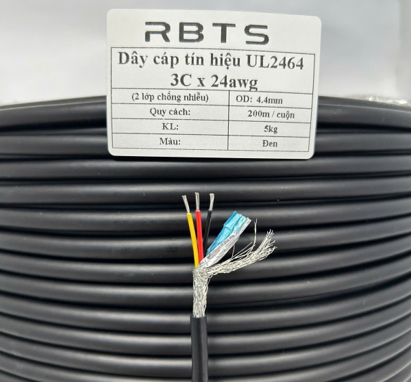 Giới thiệu cáp tín hiệu điều khiển có 2 lớp chống nhiễu UL2464 3C24AWG – RBTS
