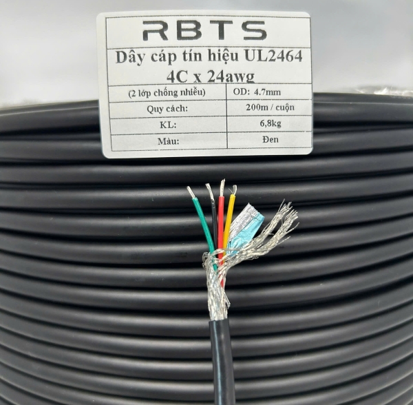 Giới thiệu cáp tín hiệu điều khiển có 2 lớp chống nhiễu UL2464 4C24AWG – RBTS